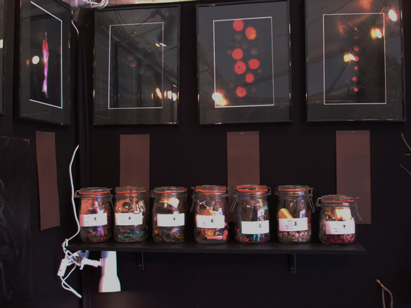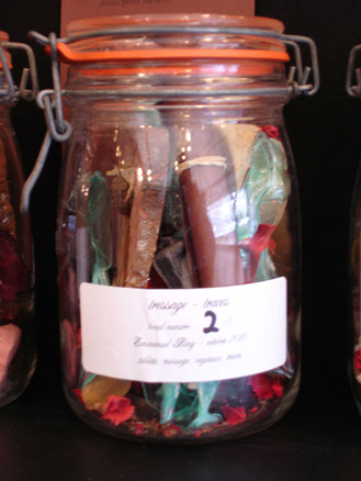 Dans ces conserves impatientes se trouvent mêlés messages , empreintes, désirs, secrets, objets de culte (mais lequel), os et symboles d'une mort tout à la fois passée et future, relique enfermée dans son air, où se tresse dans sa trame la trace du temps.