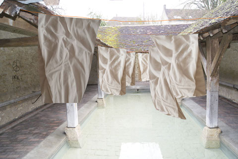 L’idée est de convoquer l’imagination et la mémoire du public par le biais de la présence même du lavoir, et de notre installation. Nous lui proposons de participer en écrivant.
